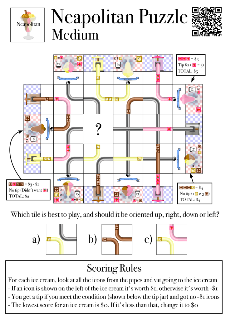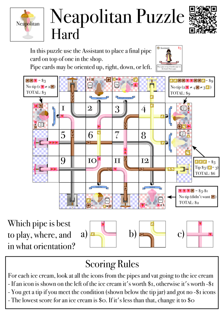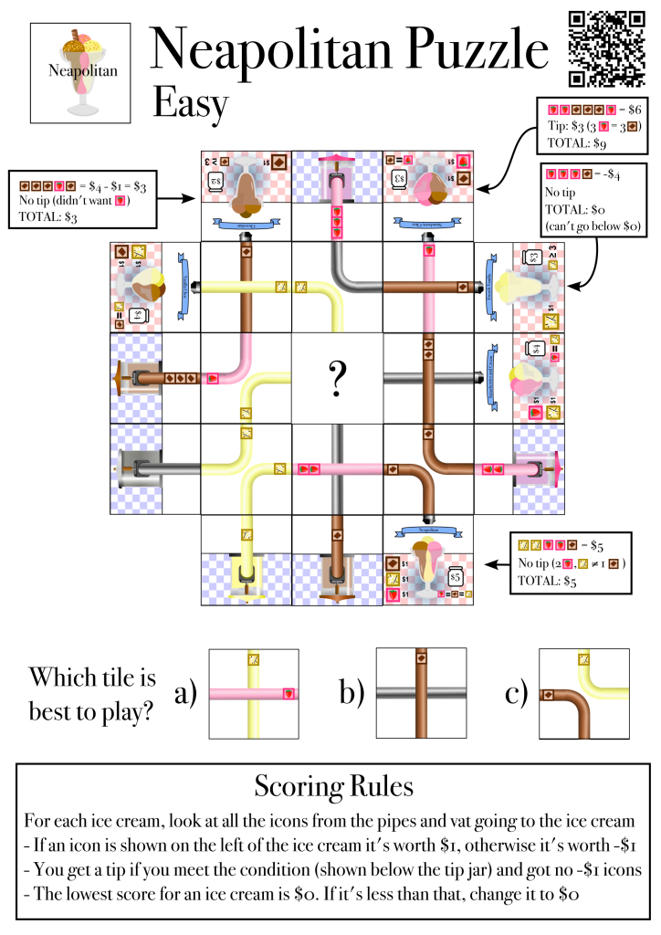 Neapolitan is a chill, easy to learn 1-4 player cooperative game of running an icecream shop. Your goal is to give customers the ice-creams they want. At the end of the game, you total the money you made for the day - can you afford a bigger shop, or did you just go broke?
